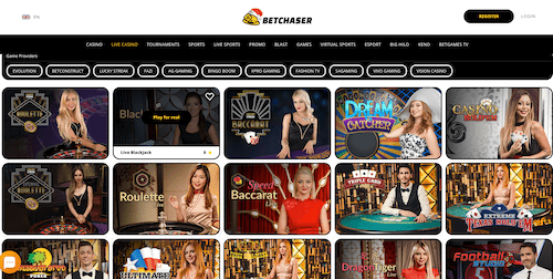Quando se trata de cassinos ao vivo, a configuração do BetChaser Casino é uma das melhores do mercado. O cassino ao vivo foi projetado para que atenda a outros concorrentes no mercado, que inclui cassinos estabelecidos antes do Betchaser Casino.