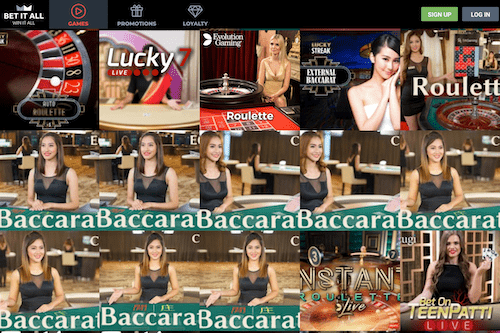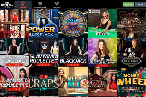 Dinheiro-dinheiro nos jogos de cassino ao vivo no Bet It All Casino.