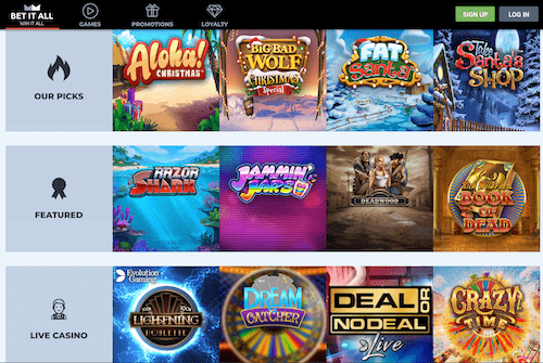 Quando se trata de selecionar os melhores jogos, aposte que todo o cassino está na vanguarda. O cassino se uniu às melhores empresas da indústria de jogos para trazer aos jogadores a melhor experiência de jogo. Esses incluem; Evolution Gaming, Sr.Slotty, Endorphina, Betsoft, Microgaming, e Netent. Os jogos da aposta que todos o cassino são muito diversos e dão a cada espaço de jogadores, independentemente do pano de fundo, para obter uma experiência maravilhosa.