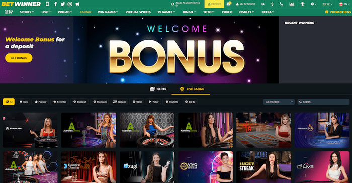 Betwinner não é um cassino comum, pois eles são em primeiro lugar dependem de jogos de cassino com revendedores ao vivo. A página do cassino ao vivo é a que você será redirecionada depois de clicar na guia Casino, e seus jogos com revendedores ao vivo são fornecidos pelo evolutiongaming, Pragmaticplay, Vivogaming, Authenticgaming, Ezugi e XPG. Os jogadores podem desfrutar de bacará, Blackjack, 777 Jackpot, Roleta e outros jogos ao vivo em diferentes variações.
