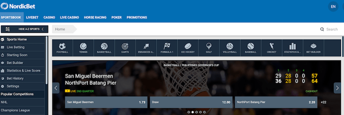 Outros esportes que recebem muita ação no Nordicbet são tênis, basquete, fórmula 1, hóquei no gelo, dardos, golfe e esportes eletrônicos. As corridas de cavalos recebem sua própria seção no site para facilitar o acesso às muitas reuniões disponíveis. Obviamente, a lista continua, já que a casa de apostas pretende atender a fãs de todos os esportes. Nós realmente apreciamos o grande número de mercados encontrados durante a Nordicbet Sports Review.