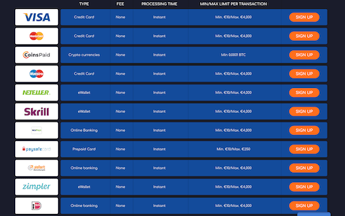 Para saques, o tempo de processamento é de cerca de um a três dias bancários para cartões de crédito e instantâneo para todos os outros tipos de pagamentos. O limite mínimo de retiradas permitido é de 50 euros e o máximo é de 500 euros. O limite mínimo de retirada do Bitcoin também é de 0,0001 BTC.