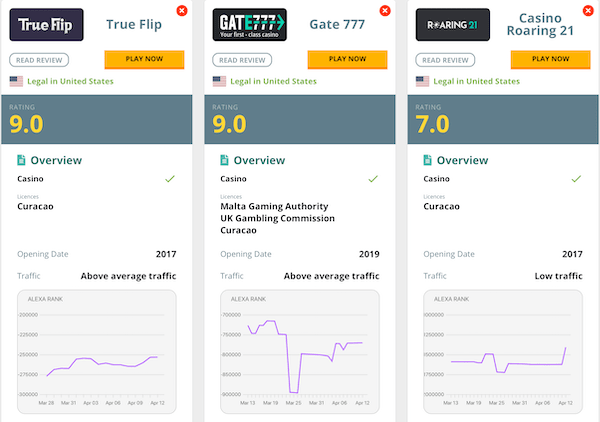 Agora, como pode não ser fácil começar a ir de um cassino para o outro, olhando para os atributos deles e fazendo comparações para decidir um para jogar, você precisará de ajuda com a comparação. É por isso que estamos apresentando o Gráfico de comparação de tráfego de gamescope para você. Esta é uma ferramenta destinada a comparar todos os cassinos e apresentar seu nível de tráfego e outros atributos.