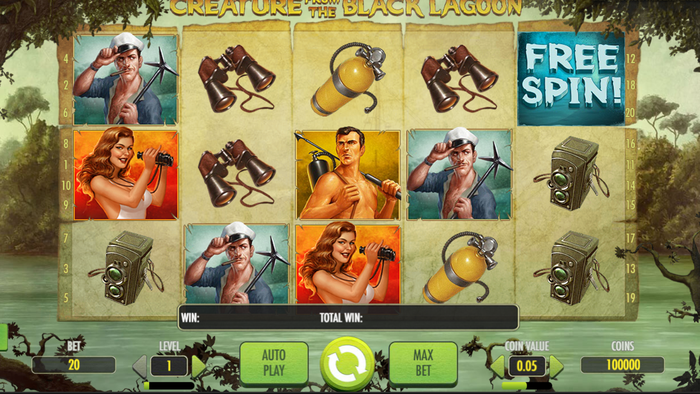 O slot do jogo traz à tona o ambiente da floresta amazônica. Há a Lagoa Negra com uma sensação cinematográfica específica que retrata o filme clássico de 1954 em segundo plano. O slot de vídeo tem uma trilha sonora irritante. Seus rolos são colocados em um determinado mapa.