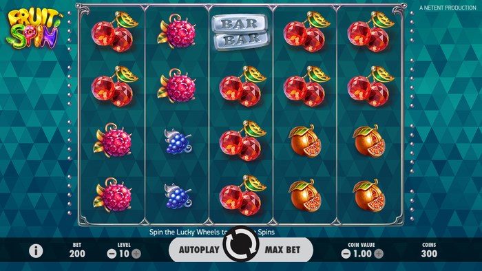 O slot de spin de frutas da Net-Ent é um jogo mais clássico do que a maioria dos outros que fazem parte da coleção da Net Entertainment. É um jogo com 5 rolos e 40 linhas de pagamento disponíveis para jogar em todos os dispositivos a partir de 20p por spin único. O jogo tem uma variação média em 3D, que paga um melhor jackpot não progressivo de 120.000 moedas. O slot usa frutas e vários símbolos clássicos na maioria de suas posições, mas são versões modernas de gráficos antigos. Tem uma sensação luxuosa com frutas de rubi, esmeralda e safira sobre os sentimentos. O jogo é sobre os recursos da Lucky Wheels, onde um jogador é obrigado a girar três rodas independentes para ganhar dinheiro real ou alguns prêmios em dinheiro.