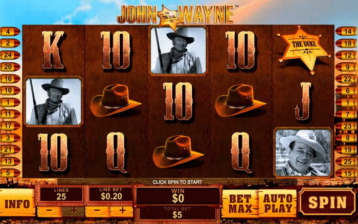 Portanto, os 5 rolos e 25 linhas de pagamento são bonitas simples para alguém que já jogou slots antes e aqueles que estão sendo apresentados a ele. Marcar uma vitória em John Wayne é bastante fácil. É como simples Como fiação Carretel e Coincidindo símbolos. Existe apenas uma exceção e isso é um selvagem, que mostra o duque com uma queda de fundo arenosa e dá prêmios com apenas dois símbolos. O crachá do xerife é a dispersão do jogo que você pode ganhar cada vez mais, desde que haja três ou mais deles. O jogo também tem um recurso de jogo de automóveis que eu pessoalmente amo.