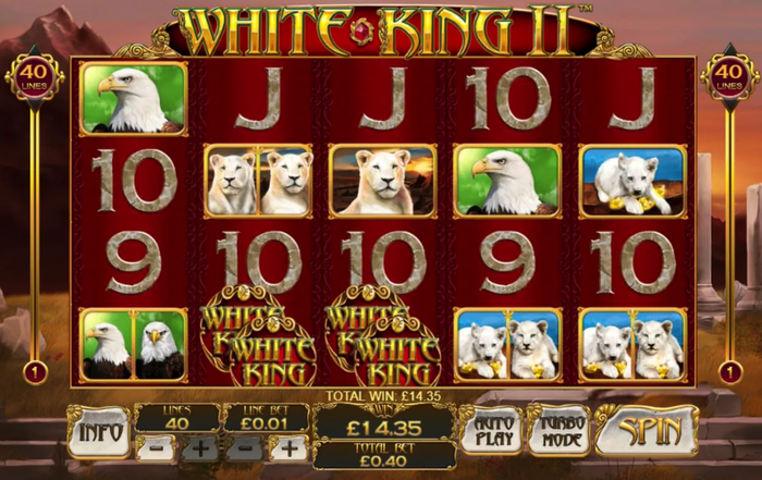 O jogo tem 5 rolos e 40 linhas de pagamento jogáveis a partir de 40p por spin. O rei branco é o símbolo selvagem que desencadeia grandes vitórias. O Logotipo White King atua como a dispersão que ativará o majestoso recurso gratuito da noite.
